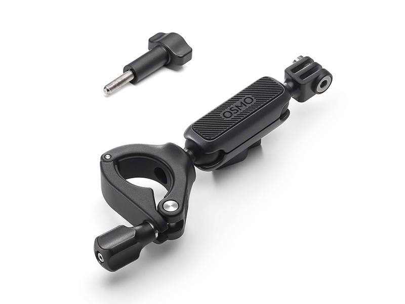 Attach your Osmo Action to the handlebar of your bike with the Osmo Action Handlebar Mount. This handlebar mount is easy to mount and supports a 360° rotating view for multi-angle framing. It is also compatible with different sized handlebars thanks to the adjustable tube diameter.