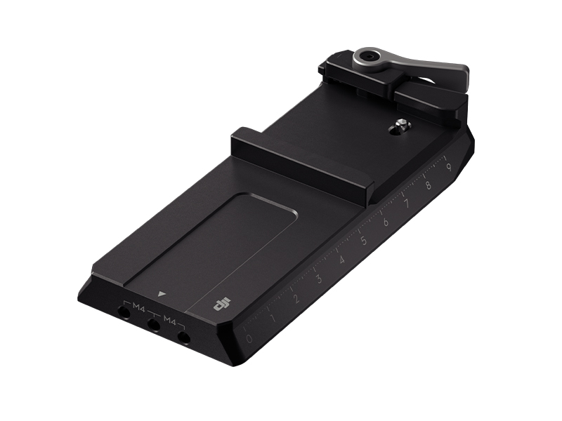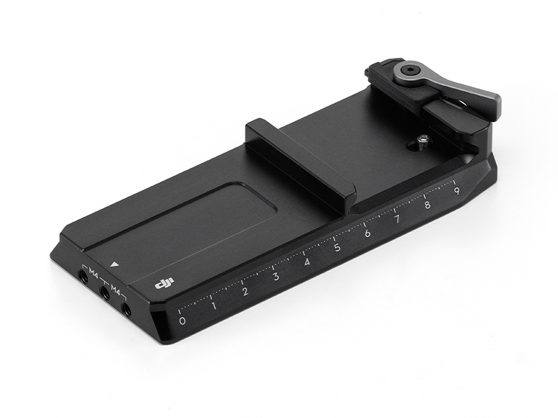 Features a scale on both slides and a serrated slot design on the bottom. This complements the gimbals fine tuning knob and allows cinematographers to perform precise millimetre level adjustments when changing cameras or lenses while also facilitating seamless transition between tripods and stabilisers.