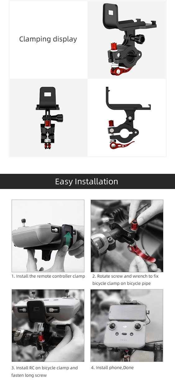 With this bicycle clamp mount, you can freely operate the remote controller whilst riding your bike. This is an easy way to ensure your ActiveTracking is still working and removes the need to place the controller into your backpack.